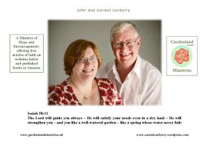 - I wrote my first book ‘God’s Fruitful Garden’ in 2012 while John and I were leading a home fellowship in Bedford (UK). John and I also began an online ministry of hope and encouragement at http://www.gardenlandministries.uk We moved to North Derbyshire (UK) in 2018 and continue to share ‘Good News’ however we can as The Holy Spirit leads.